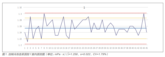 報(bào)廢濾白冷凍新鮮血漿質(zhì)控1(n=20):1.253±0.017 (CV=1.32%)。(單位:mPa · s)。 報(bào)廢濾白冷凍新鮮血漿質(zhì)控2(n=20):1.284±0.020 (CV=1.58%)。(單位:mPa · s)。