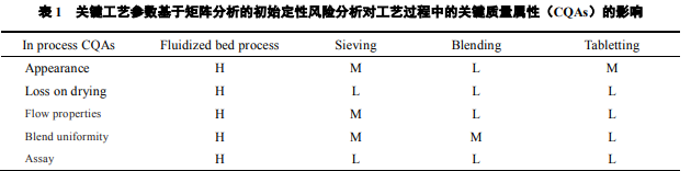 a. 基于定性初始風險識別的矩陣分析和定量風險的失效模型效率分析,影響工藝過程和成 品的關鍵質量參數(shù)風險程度最高是流化床工藝。即流化床制粒工藝是影響替米沙坦片質量的關 鍵工藝。